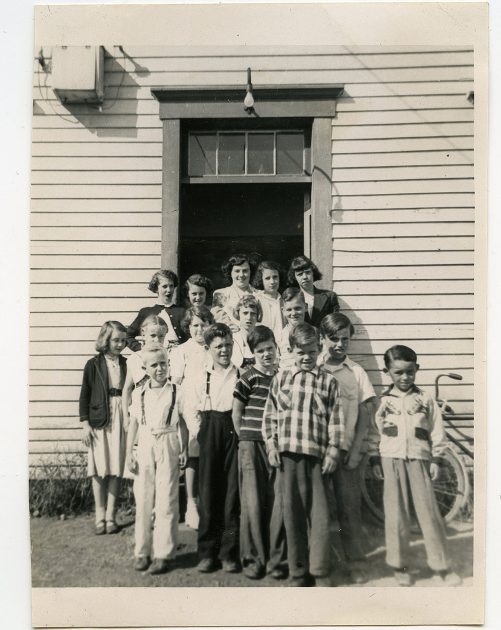 Shown are 15 of the 22 pupils registered for the 1951 to 52 school year. Surnames of the children: Dunbar, Johnson, Stuart, Fraser, Matheson, Wadden, Phalen, Ellis, Johnson and White.