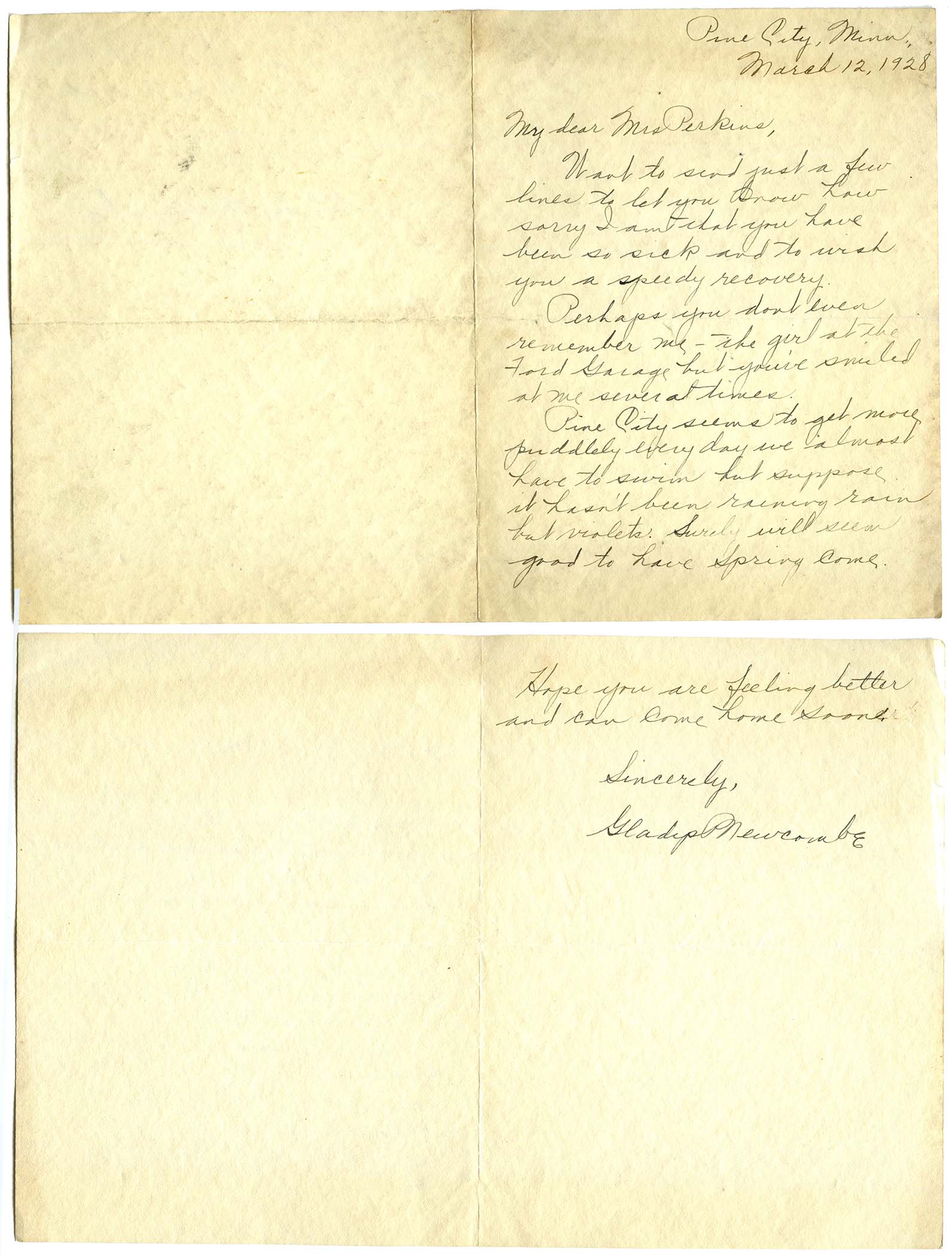 | Tags: | , Emma Gunn, Emma Gunn Perkins, Emma Perkins, Pine City, Pine County, Minnesota, 1928, Gladys Newcombe |