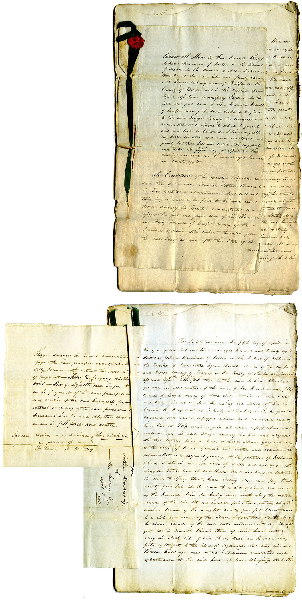 Know all Men by these presents that I Jotham Blanchard of Pictou in the District of Pictou in the Province of Nova Scotia + + Barrister at Law am held and firmly bound unto George Sweeney now of Halifax in the County of Halifax and in the Province aforesaid Deputy Assistant Commissary General in the full and just sum of Five Hundred Pounds of lawful money of Nova Scotia to be paid to the said George Sweeney his executors + + administrators or assigns to which payment well and truly to be made I bind myself my heirs executors and administrators + + + firmly by these presents sealed with my seal and dated the fifth day of April in the year of our Lord one thousand eight hundred and twenty eight.