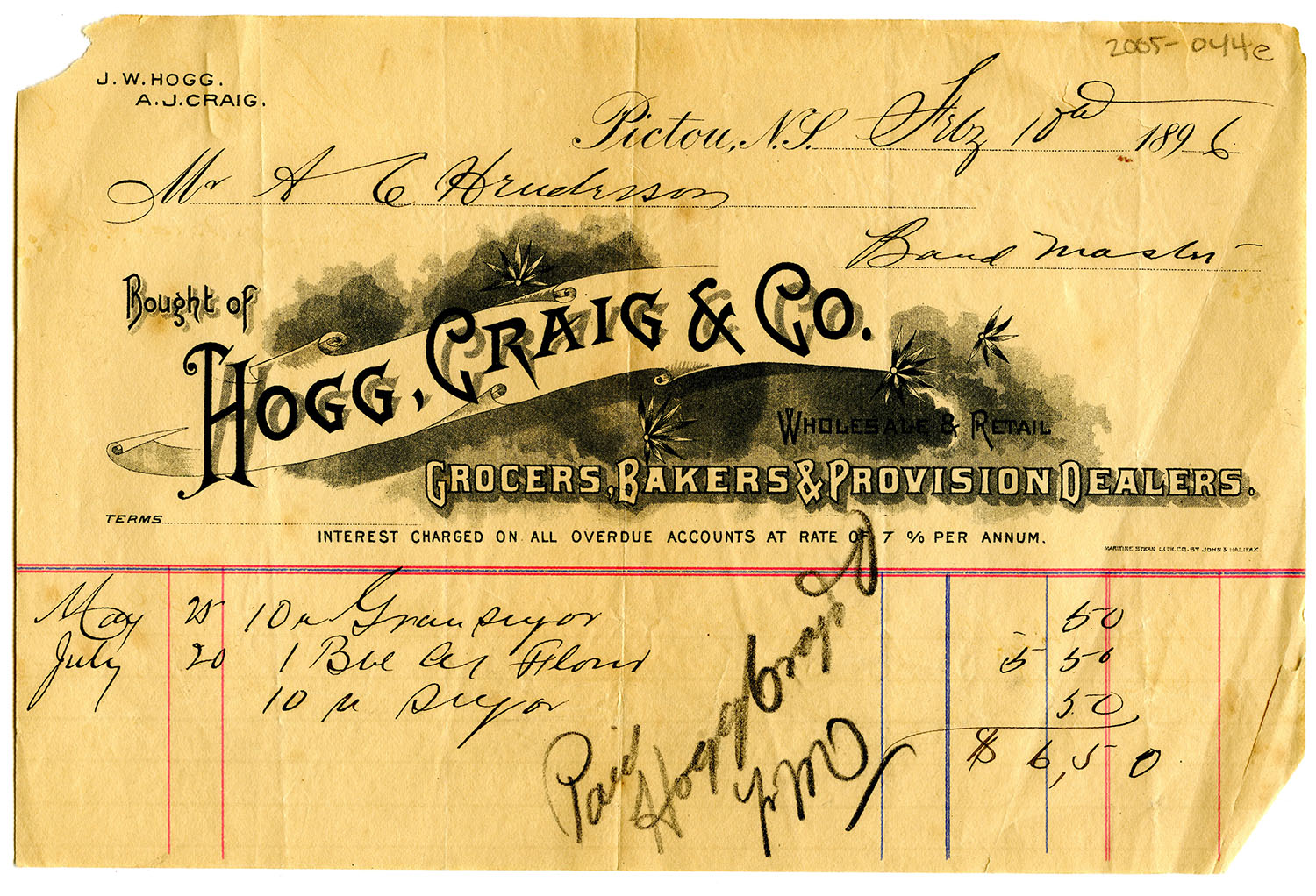 | Tags: | Jack Cunningham collection, Hogg Craig and Company, grocerers, merchants, Pictou, Pictou town, 1896, A C Henderson, J W Hogg, A J Craig |