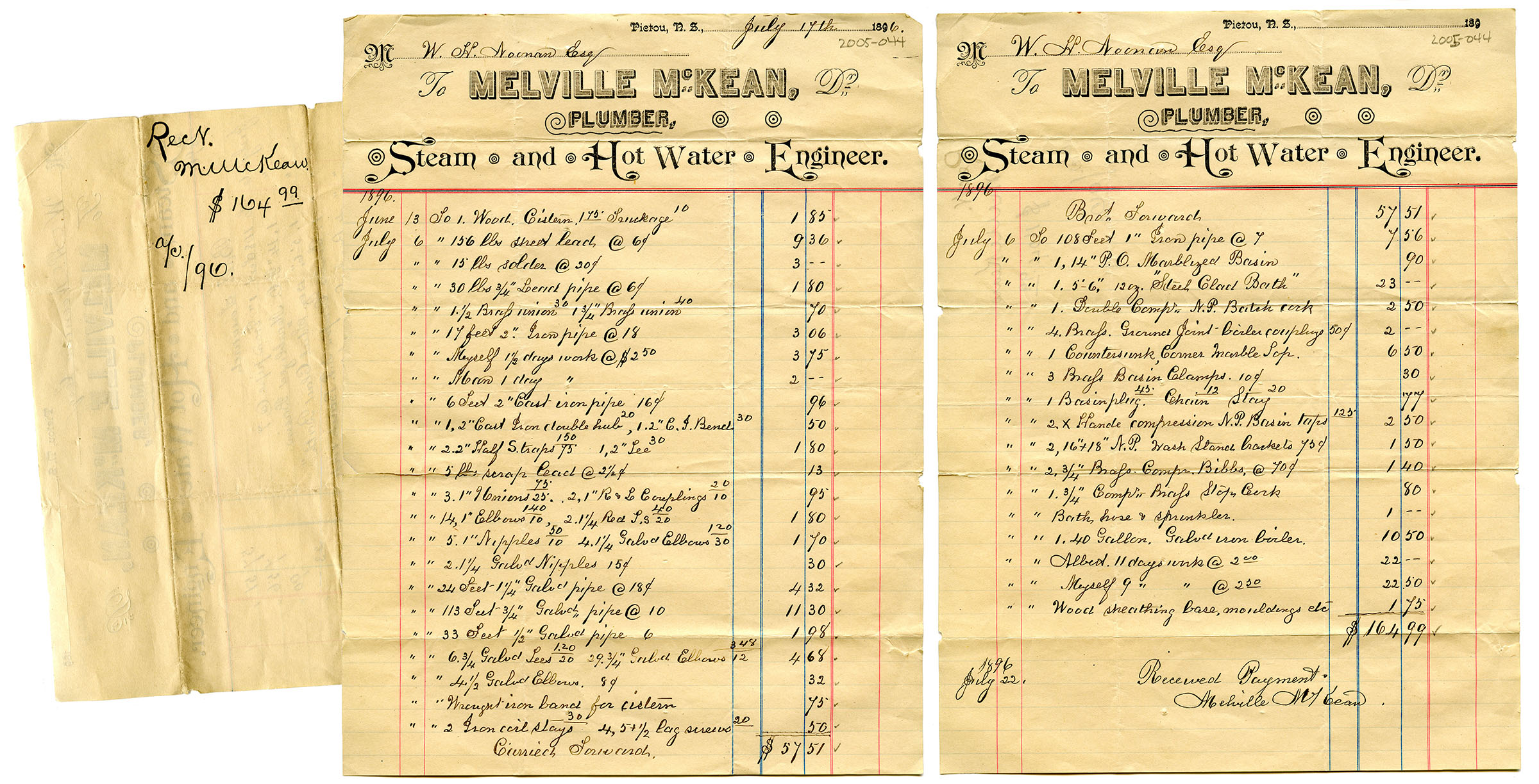 To Melville McKean, Plumber, Steam and Hot Water, Engineer