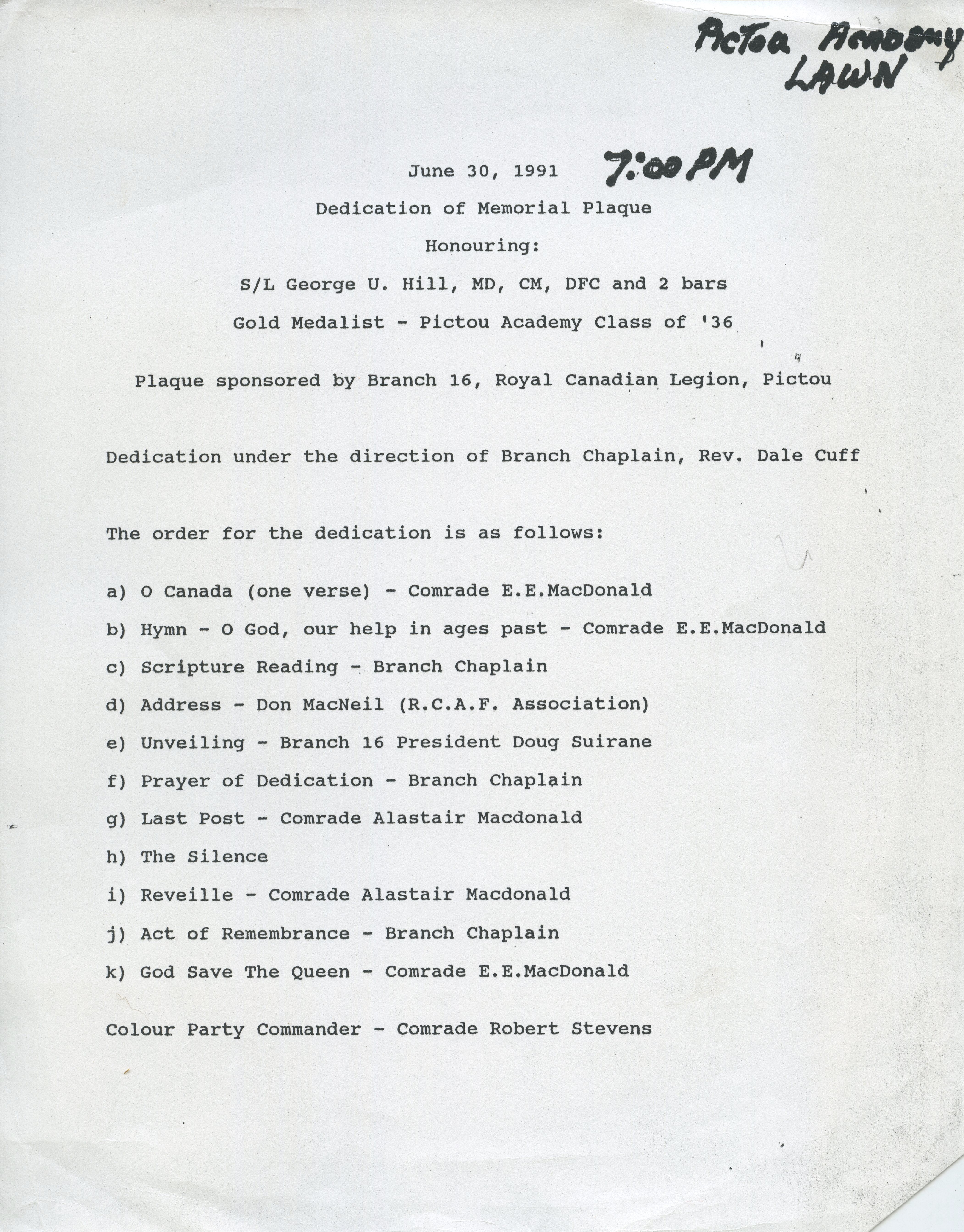 Dedication of Memorial Plaque Honoring S/L George U. Hill