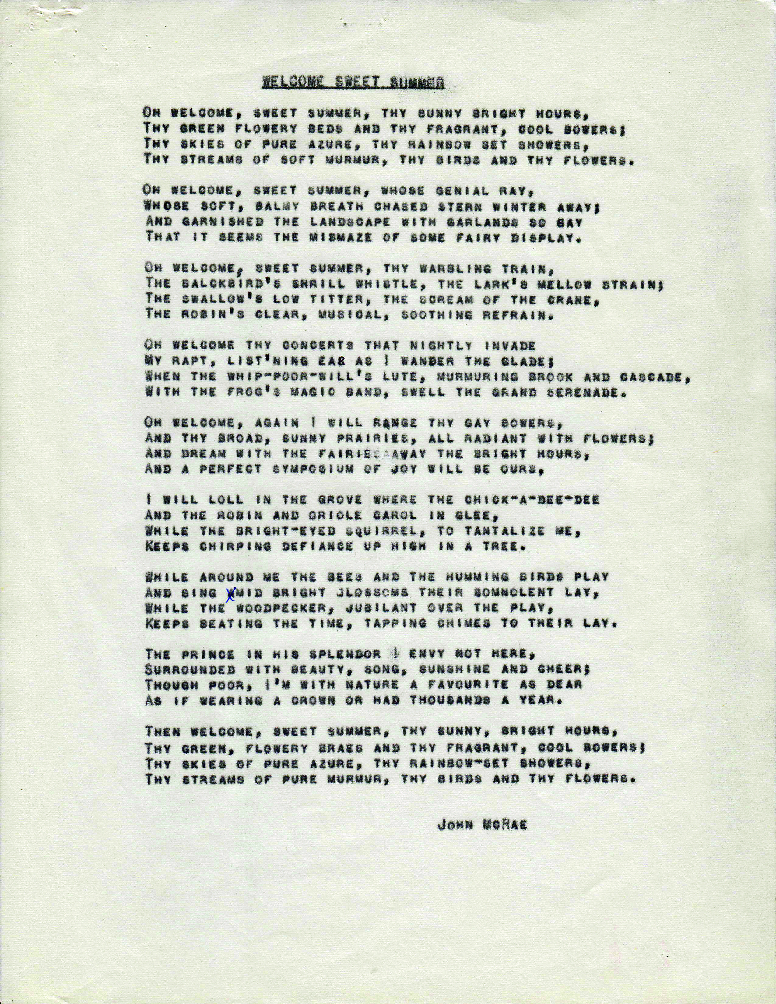 | Tags: | John McRae, Alexander Hugh McQuarrie, Allan McQuarrie, Catherine McQuarrie, Ethel Drummond, Welcome Sweet Summer |