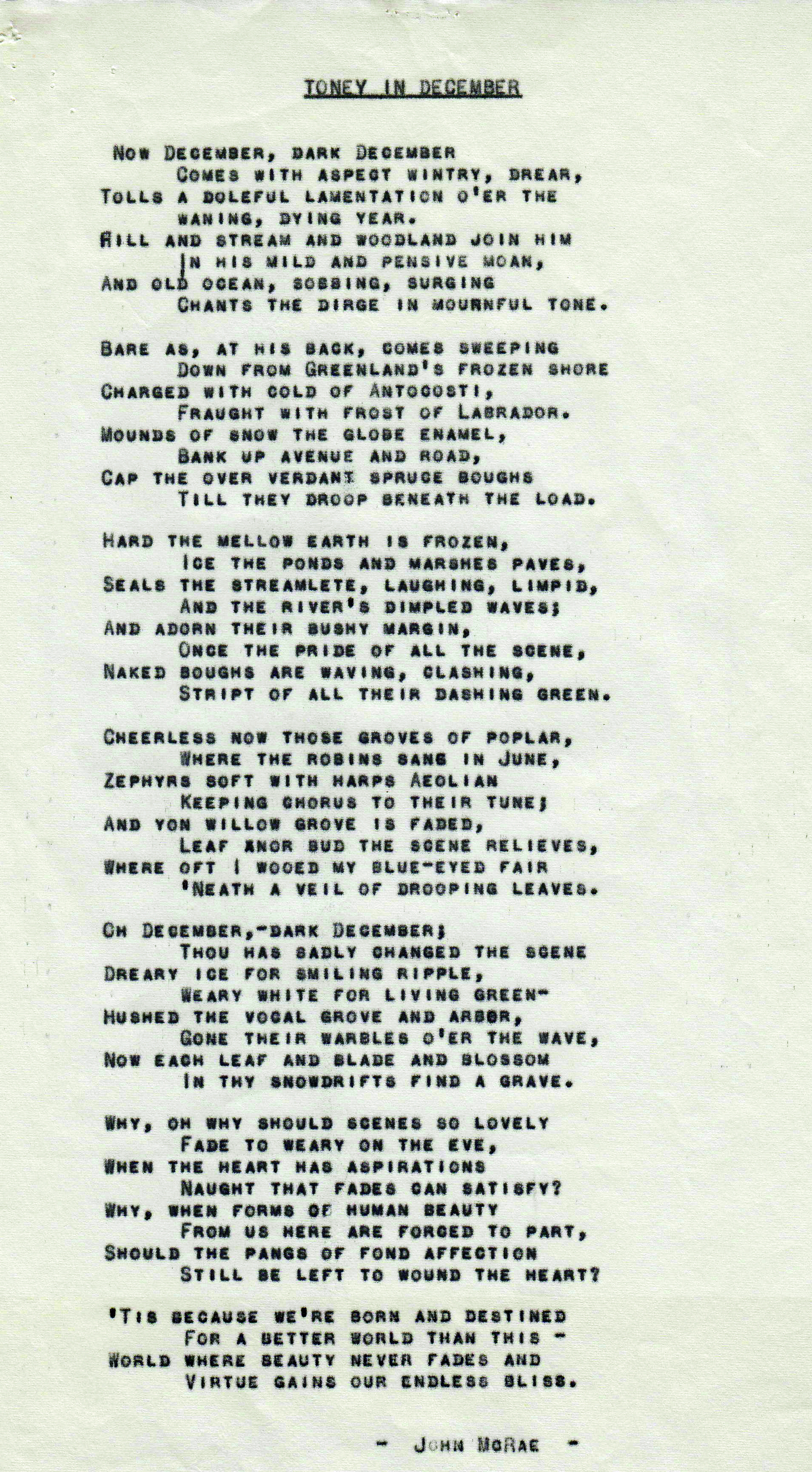 Poem: The Toney in December by John McRae