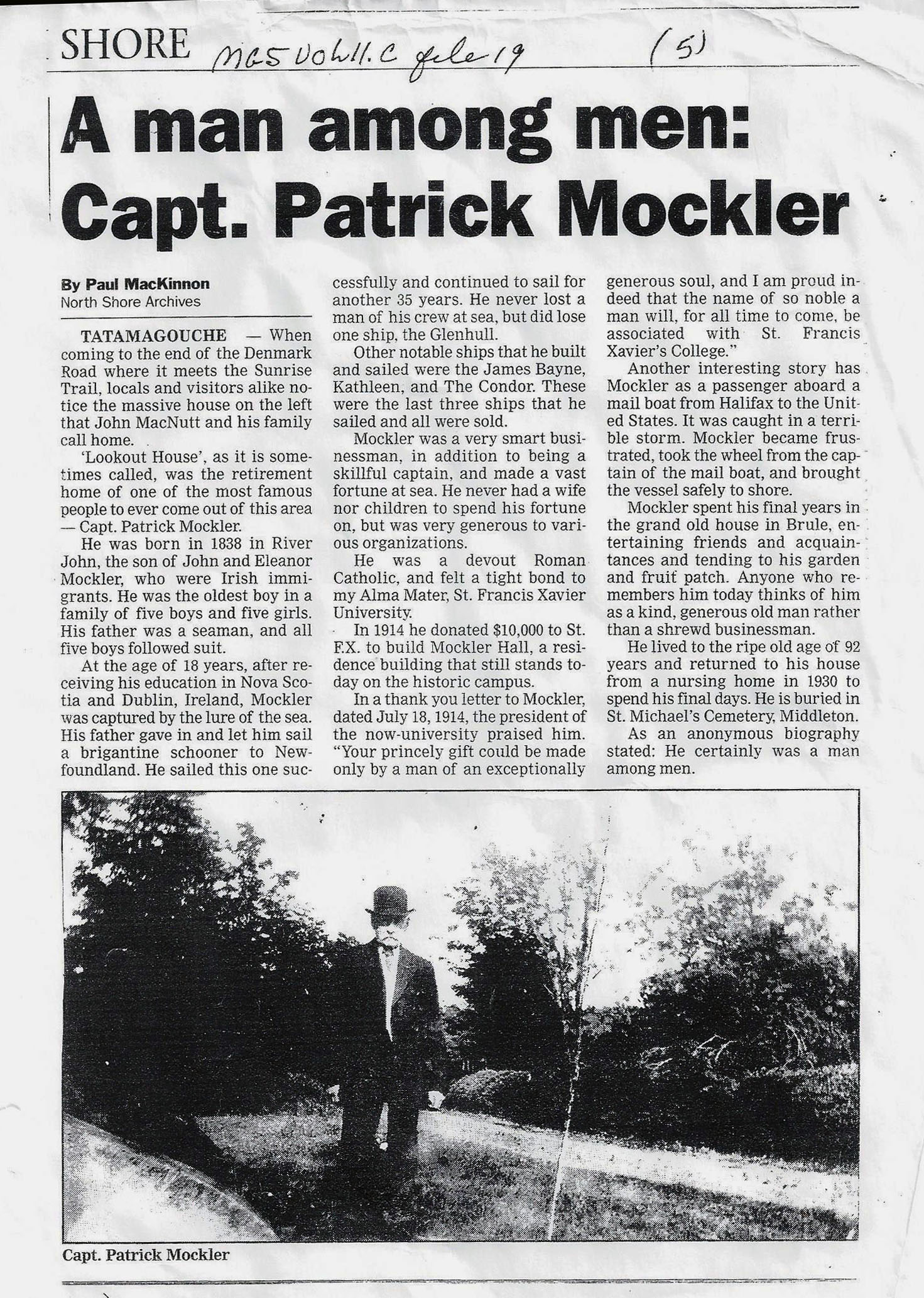 Article: "A man among men: Capt. Patrick Mockler"