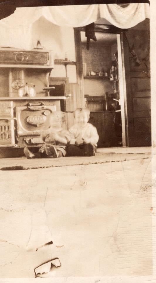 This photograph has no names on it other than it was taken at the Baillie farm in Glenfalloch. It’s a glimpse back in time...beautiful old wood stove, hardwood doors, trim and wainscotting, old pantry, kettle on the stove, nappies and towels hanging in the kitchen to dry...a typical Nova Scotia kitchen.