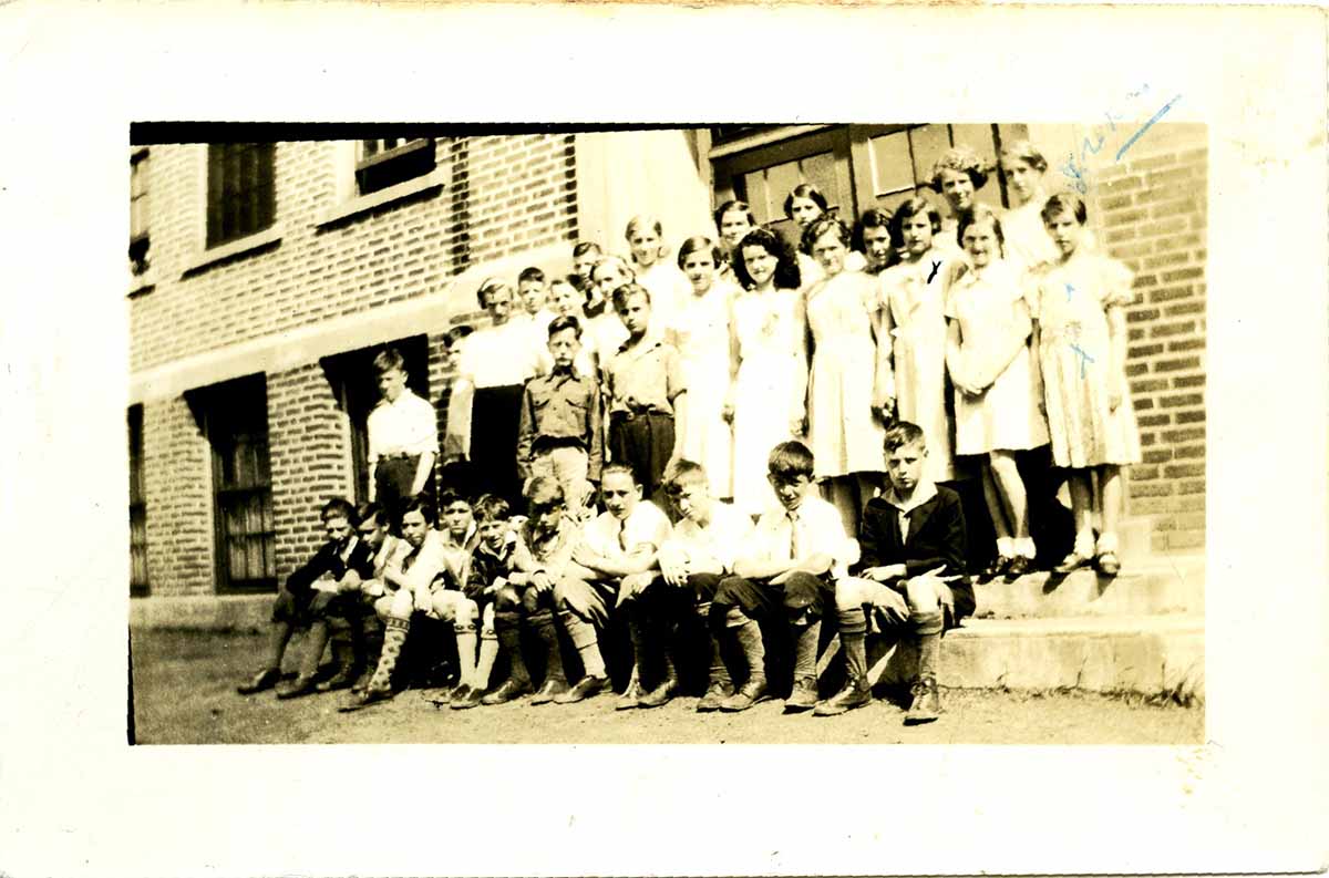 Irene McFarlan, standing on the end, daughter of Abbie and Robert W McFarlane. - named marked with blue ink