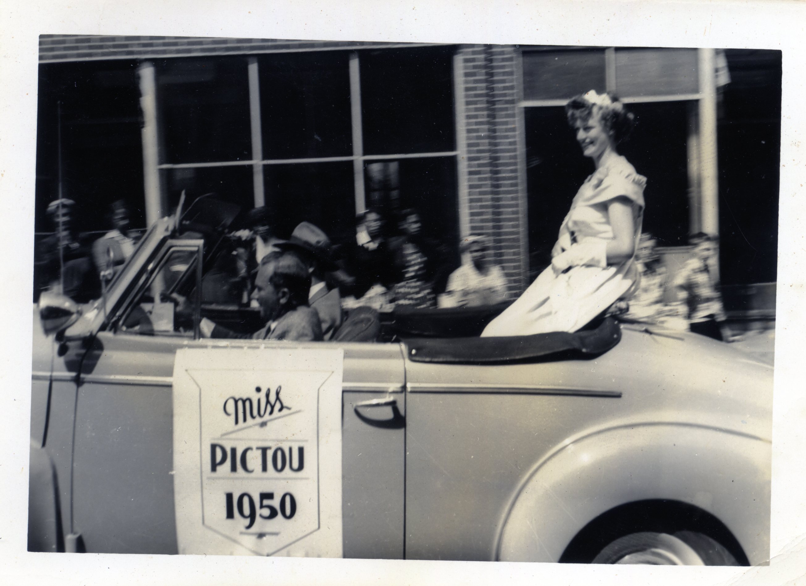 Miss Pictou, 1950 (Caroline Fraser) riding in a parade