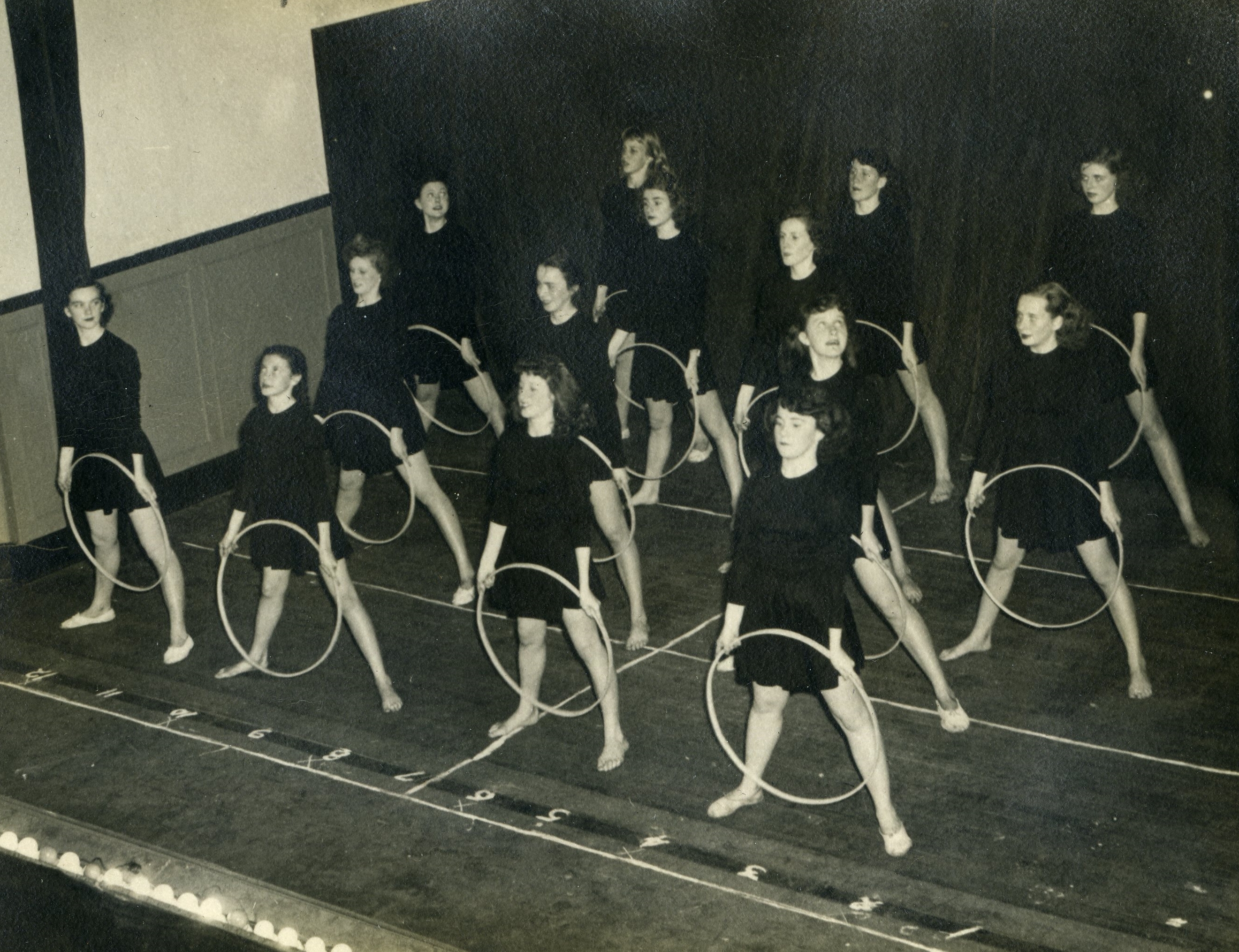 Part of the Pictou Community Centre's Spring Review of 1948. The hoop routine, listed in the program as 'modern exercise,' and was performed in their New Glasgow show.