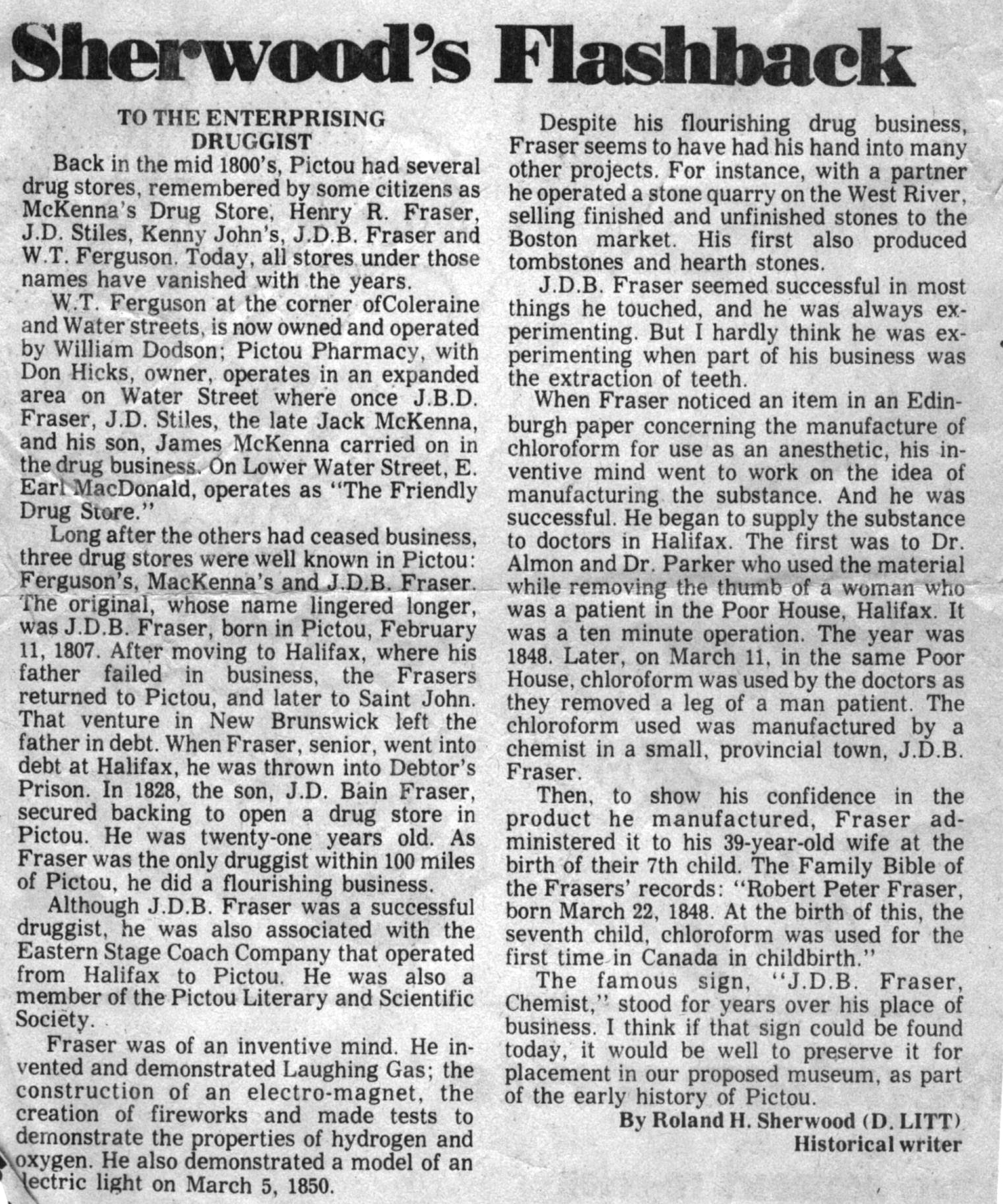 This is an article written by Pictou's famous historian - Roland Sherwood and was bublished in the Pictou Advocate - date unknown
