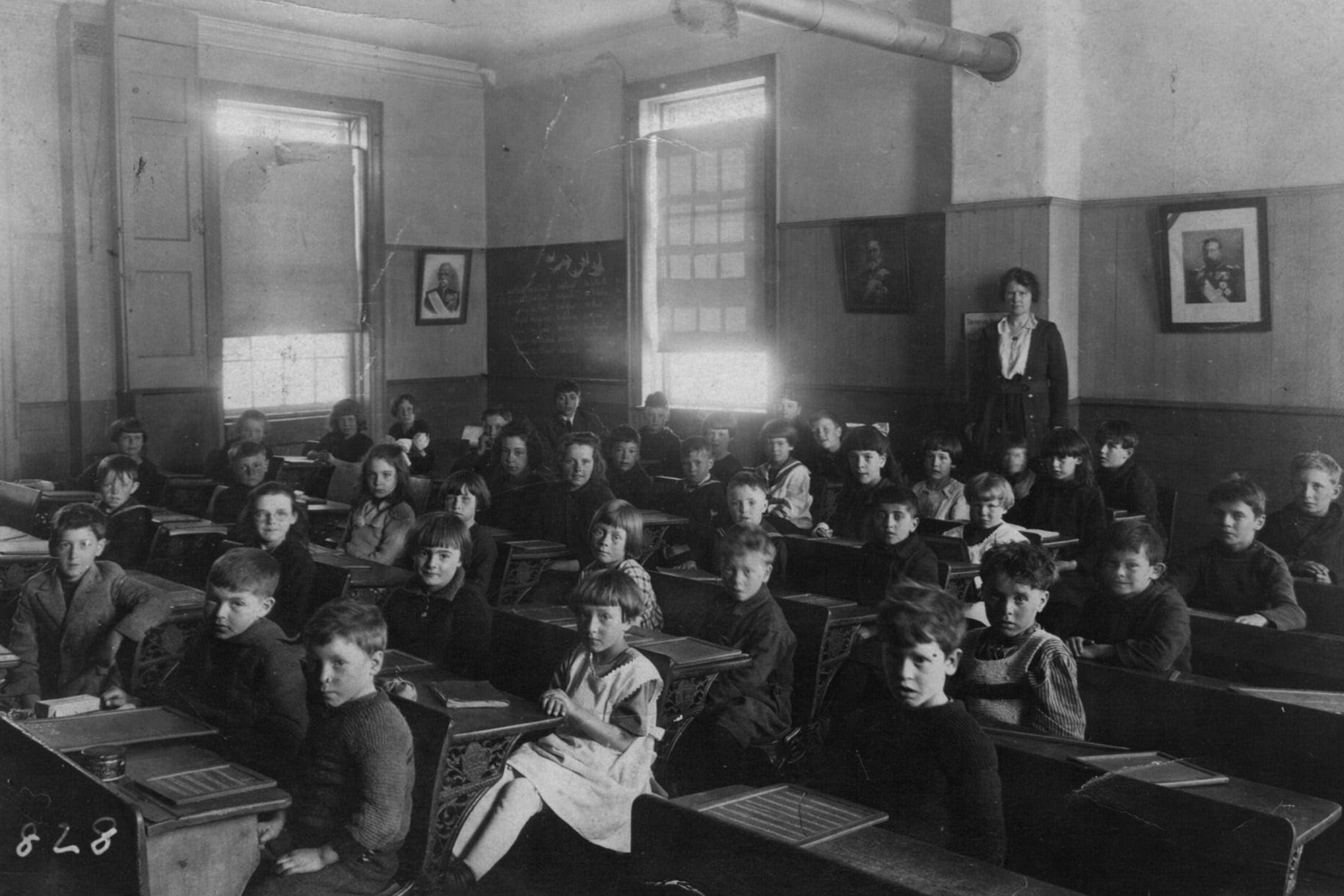 James Ives Robertson's grade one class photo, James (b January, 1917 is in the front row on the far left. The teacher is Miss A Cameron - standing at the back. The photo is undated but likely was taken in 1923.