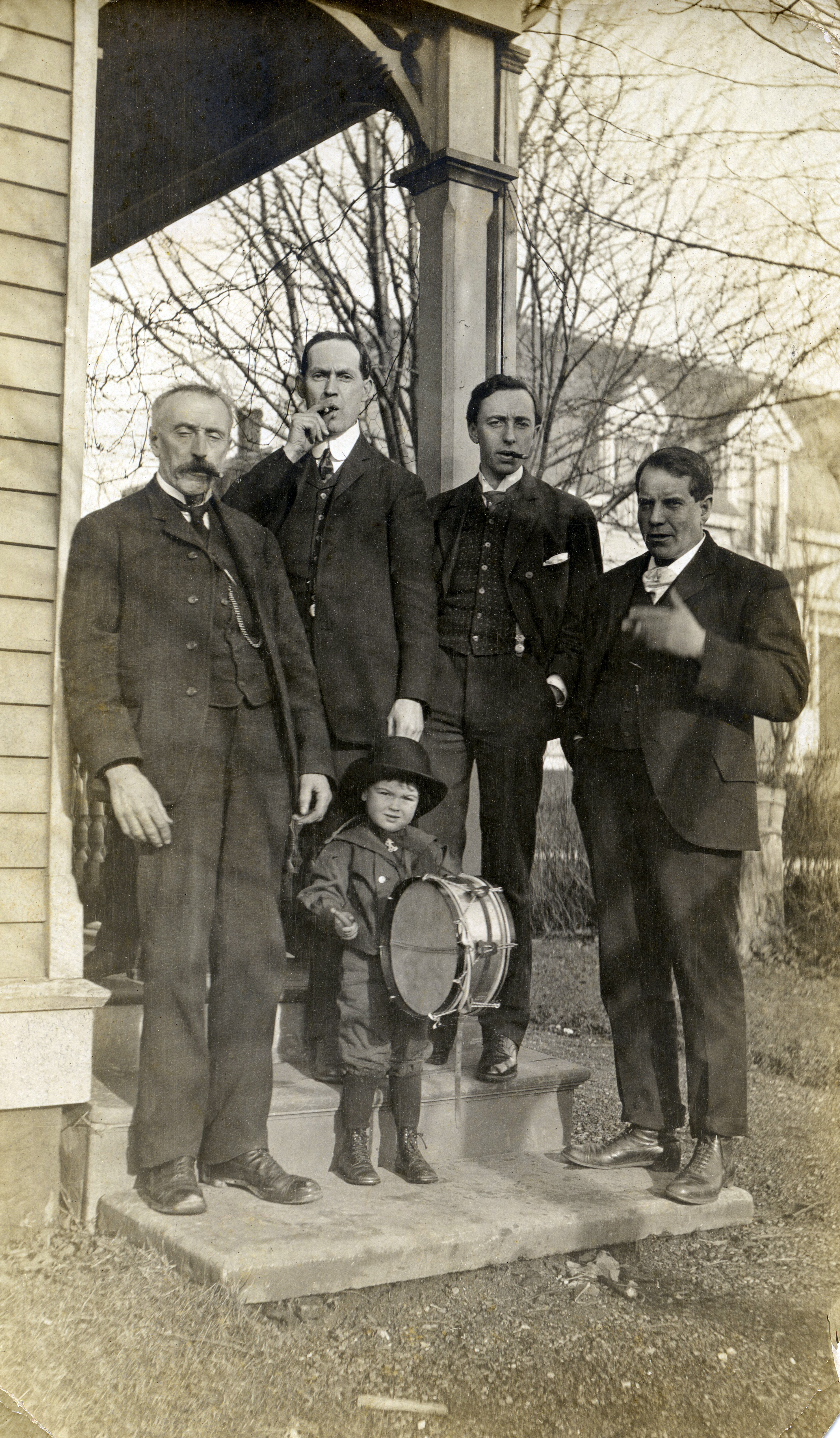 Written on back of photo: George Douglas, J Ed MacDonald, Andrew Douglas, David Brown, Douglas MacDonald, New Glasgow, NS. Christmas Day.