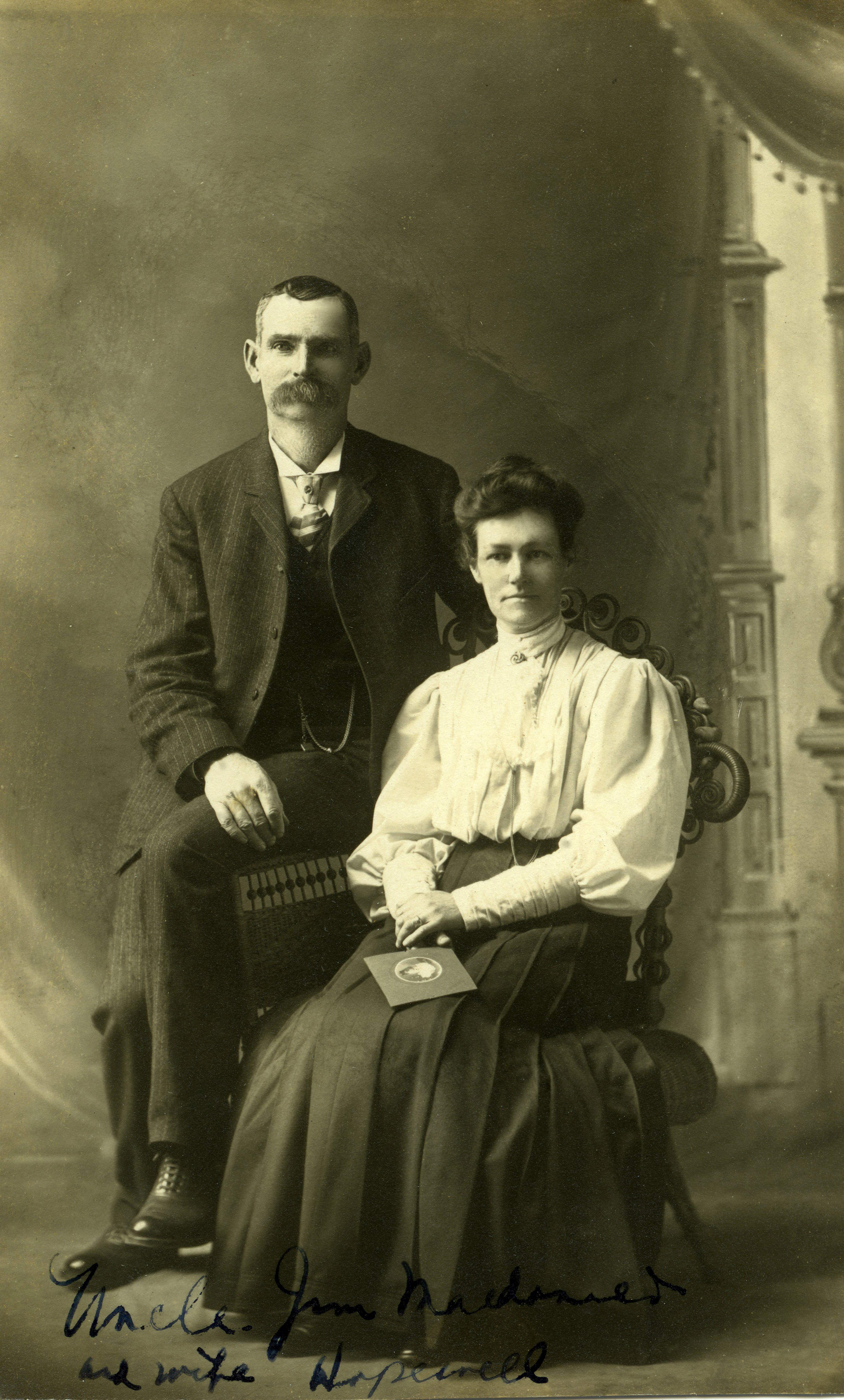 Uncle Jim MacDonald and wife, Hopewell, written on photo. Uncle Jim, Aunt Addie? written on back of photo.