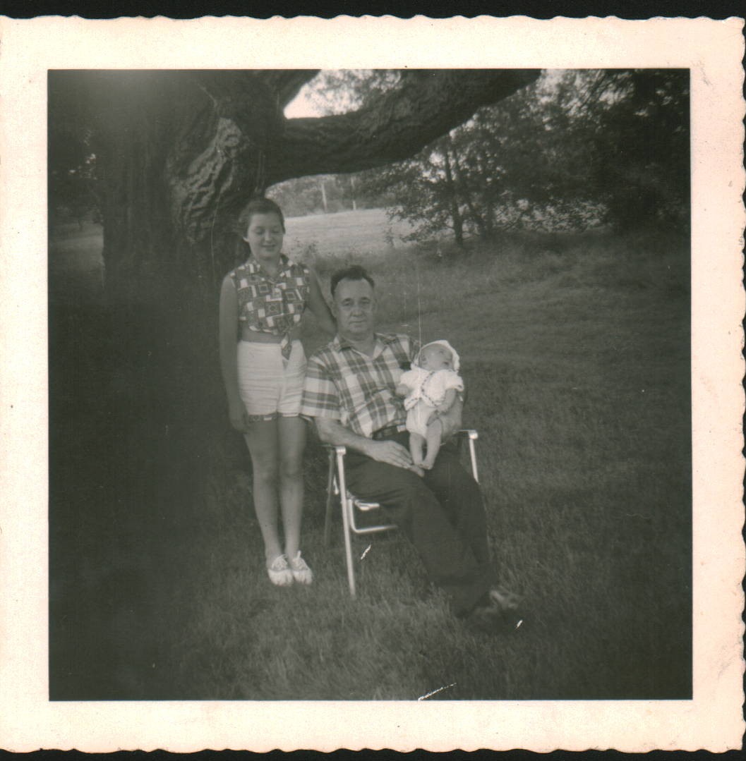 Photo of Bruce McIntosh Munro holding his baby great-nephew Jay Anderson with Julie MacDonald in Sydney, Nova Scotia.