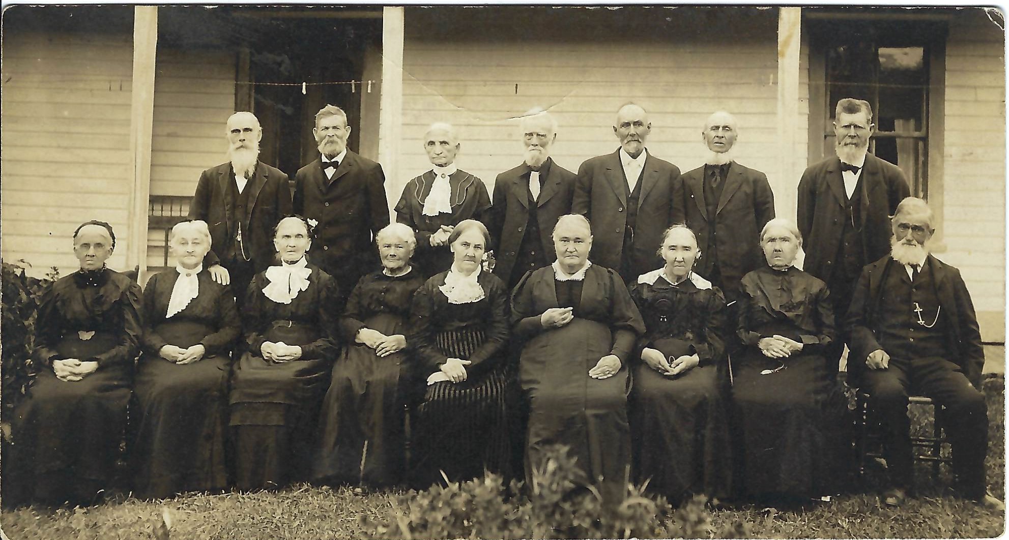 Back row: 1. John A. Wilson (Fred's grandfather); 2. Davie Terry (Herb's uncle); 3. Katie Terry (Davie's wife); 4. Robt. Anderson; 5. Dan Graham 6. Jimmie Johnston (Harve's father); Jimmie Murdock (John Dave's father).