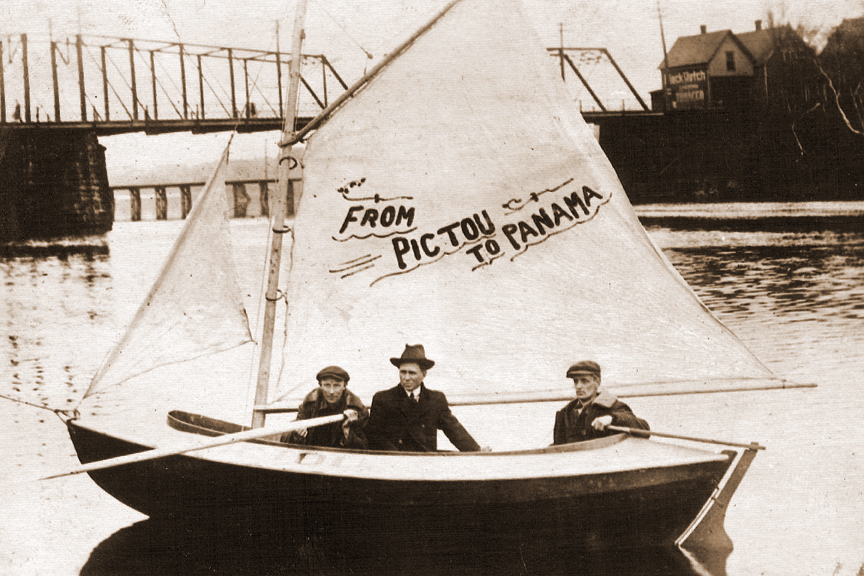 They called themselves, "The Ocean Hikers", with the canvas of their 16 foot boat proclaiming: "Pictou N.S. to Panama Canal", but before the trip ended, short of the Panama Canal, the men from Pictou were telling newspaper reporters that it was "Pictou, Nova Scotia to Panama or the Styx." In addition, they were also giving reporters highlights of their adventures on the water.