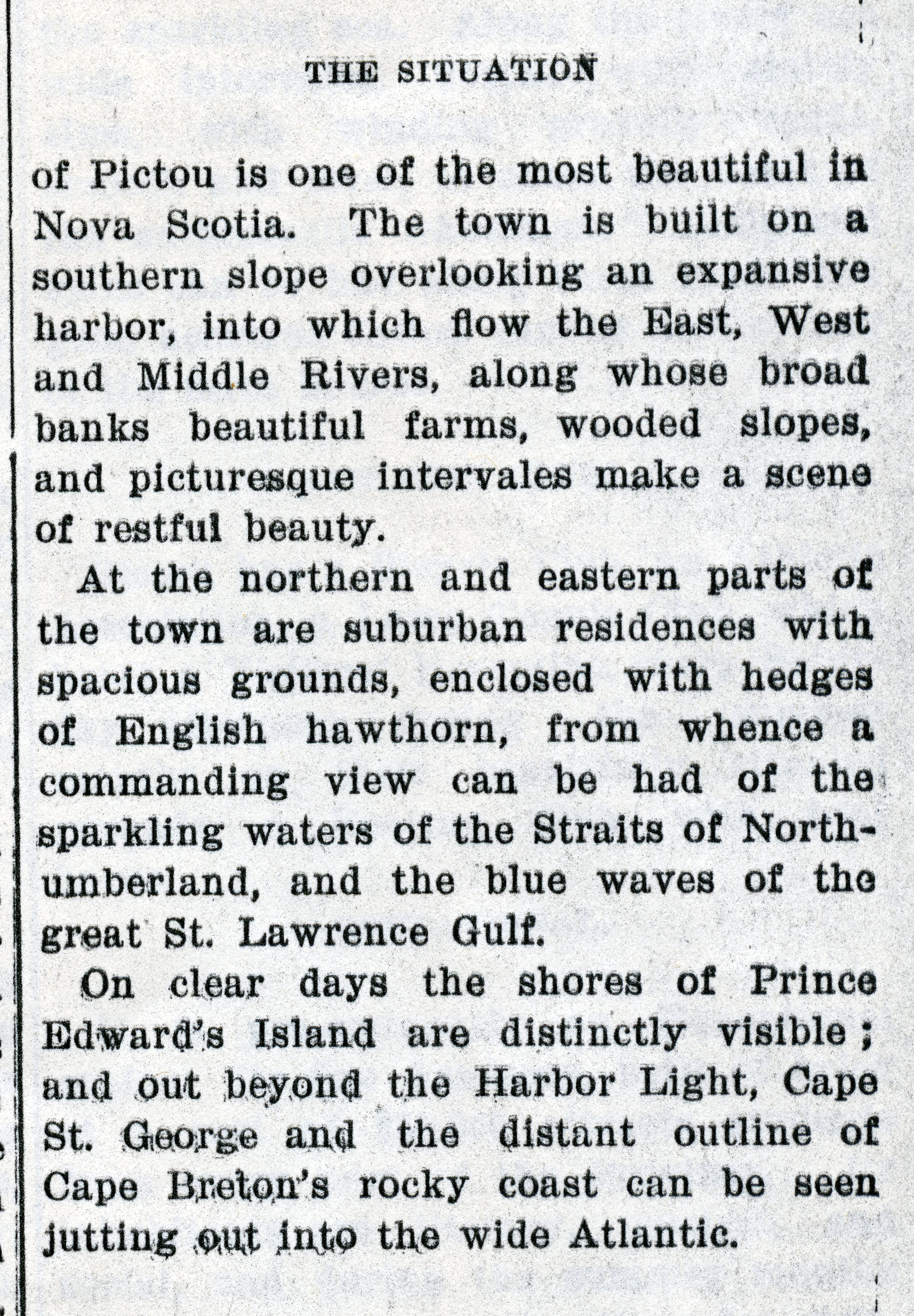 A description of the town of Pictou printed in The Canadian Trade Review, 1900.