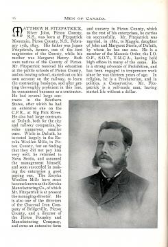 Biography of Matthew H. Fitzpatrick as published in "The Canada Album. Men of Canada; or Success by Example", Volume IV, 1895.