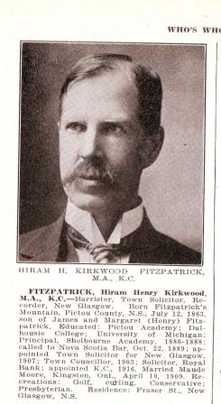 Biography of Hiram H. Kirkwood Fitzpatrick in "Who's Who and Why 1921".