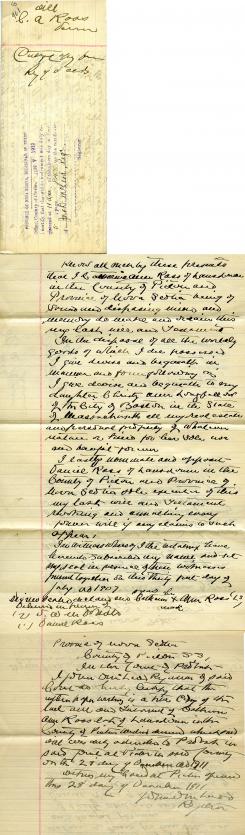 Copy of Will of David Ross of Black River, Pictou Co., NS, Miller and Tanner