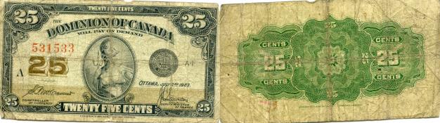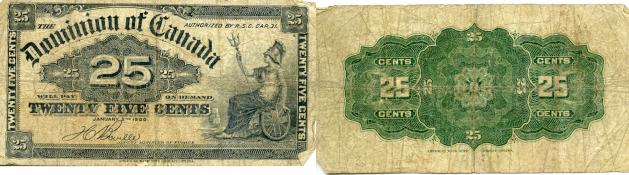 25 cents note from January 2, 1900 for the Dominion of Canada