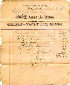Bill of sale between Isaac A Grant and Robert Dewar dated 24 Dec 1879