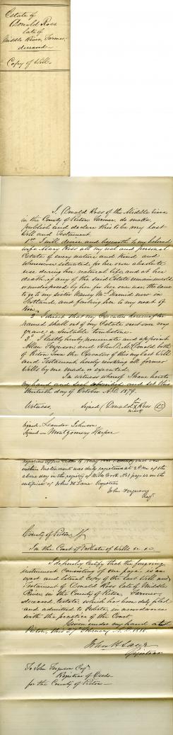 Copy of Will of Donald Ross of Middle River, Pictou Co., NS, Farmer
