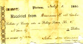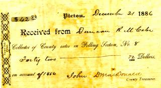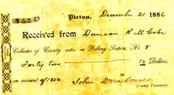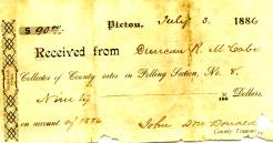 Receipt issued Dec. 21, 1886 by John D. MacDonald for the collection of county rates