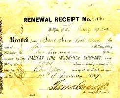 Issued Jan. 19th, 1888 by Thomas Goudge (?) for the Halifax Fire Insurance Company