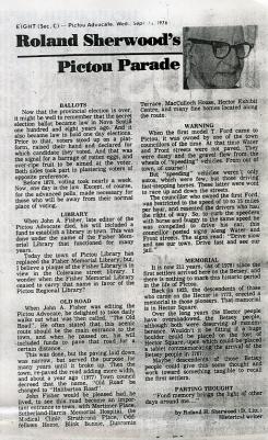 | Roland Sherwood's Pictou Parade Newspaper Article by Roland Sherwood | Roland Sherwood John A Fisher Sutherland-harris McCulloch House Betsey Pictou | ||