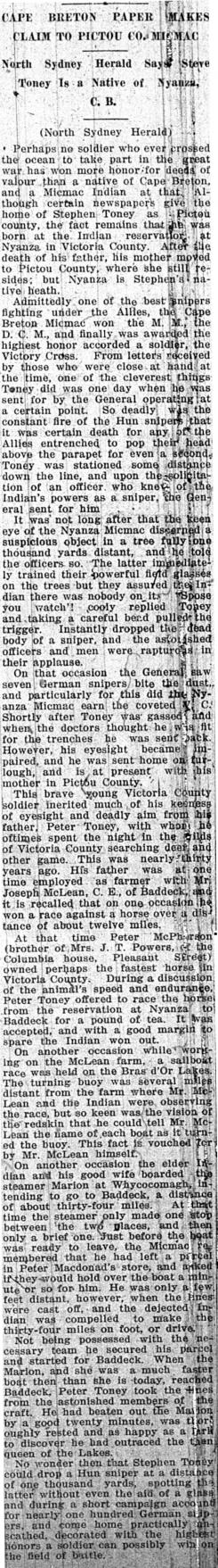 Mi'kmaq Soldiers Honored by New Glasgow including Steve Toney.