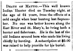 Death notice printed in the Eastern Chronicle of Mattio, 1874.