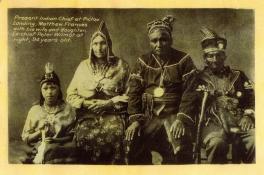 W H Munro photo of Chief Matthew Francis with his wife and one of his daughters and Ex-Chief Peter Wilmot, July 1923.