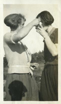 Photo taken May 1921, "P.A.: Millicent Munroe, Uldene Fraser (Goo), Muriel McKenzie (Kenny)"