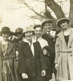 Photo taken May 1922, "Sunday Scenery: Lena, Hilda, Smithy, Bert, Doug, Irene"