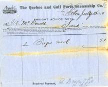 Freight advice note for John R. McDonald, Pictou