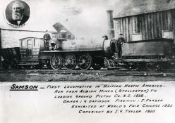 | Samson Train Photo of the two men aboard the Samson Train. | train men track sample | ||
