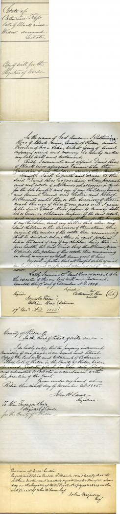 Copy of Will of Catherine Ross of Black River, Pictou Co., NS, Widow