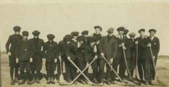Photograph donated by Diane Munro. Photo of a hockey team. Approximately 1895-1900.