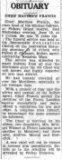 Obituary for Chief Matthew Francis printed in the Pictou Advocate 27 June 1940.
