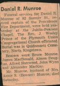 | | Daniel R. Munroe Funeral Arrangements for Daniel R. Munro of Providence, Rhode Island. | Munro Daniel R. Munro Dan Munro Rhode Island Funeral Arrangement Funeral Hopewell Annie Sarah Bowser Bowser Annie | ||
