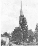 St. James Church minus a large portion of its steeple after hurricane Edna passed through Pictou in 1954