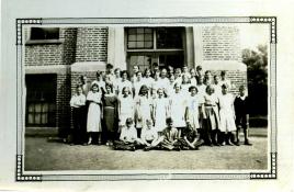 Group of men. Bob MacFarlane sitting up top in foreground.