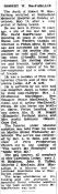 Obituary printed in the Pictou Advocate, 18 May 1950 for Robert W MacFarlane