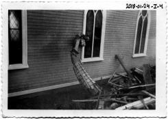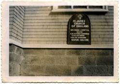 St. James Church minus a large portion of its steeple after hurricane Edna passed through Pictou in 1954
