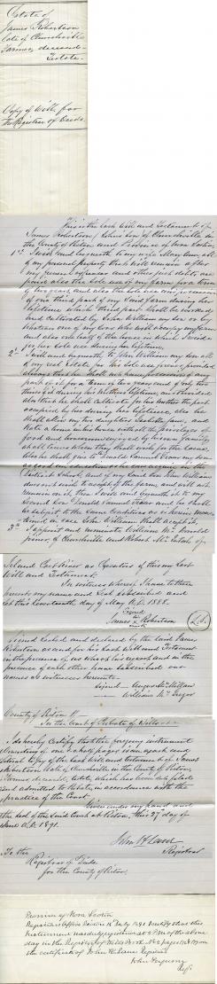 Copy of Will of James Robertson (John's Son) of Churchville, Pictou Co., NS, Farmer