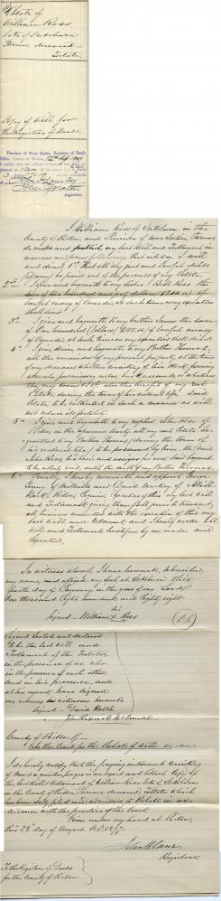 Will of Thomas Ross, Millsville, Pictou County, NS, Farmer