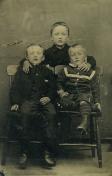 | Portraits House Metal Photo of three male children one boy is standing and two are sitting. | boots chairs suits plaid sample | ||