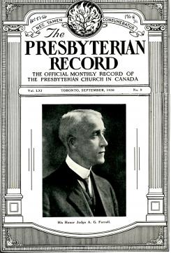 | The Presbyterian Record Record from 1936 | Presbyterian Record magazine church A.G. Farrell | ||