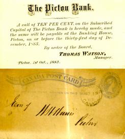 | Pictou Bank Card Thick card calling for ten per cent on the subscriber by Thomas Watson | Thomas Watson Watson Pictou Bank | ||